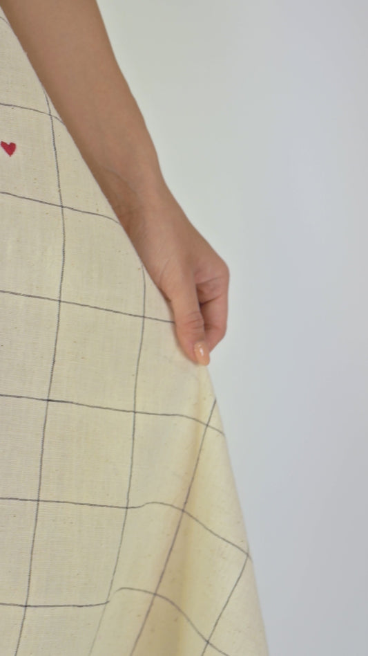 INDIGO DYED CHECKS KALA COTTON LIGHT EMBROIDERED OFF WHITE KURTI